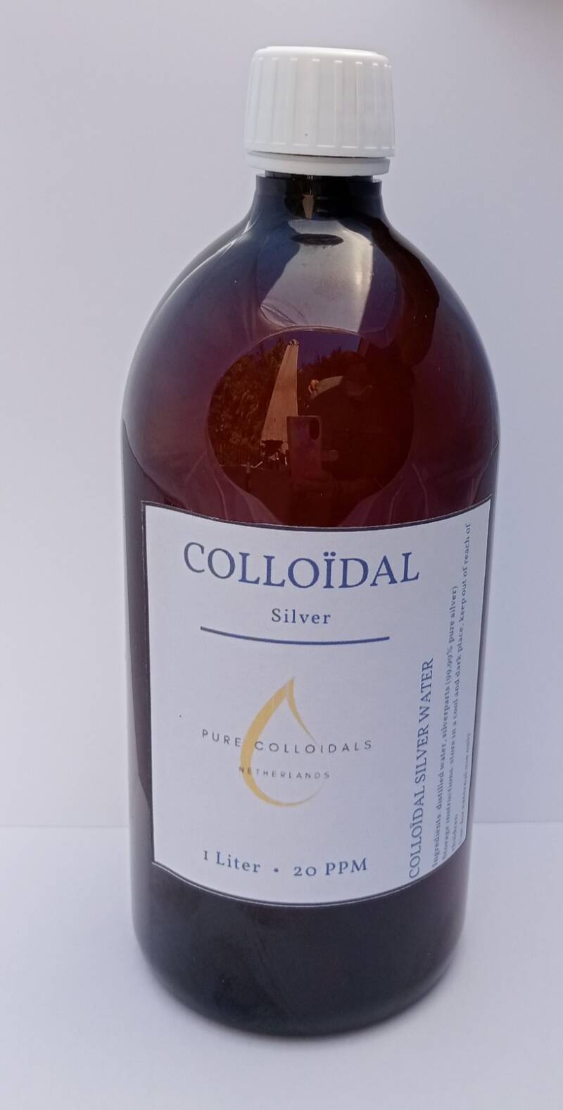 Wij produceren colloidaal zilver niet met een geforceerd proces van 100.000 volt of meer, waardoor de zilverdeeltjes te groot zijn en geen werking hebben, maar gewoon met laagspanning zodat de kleinste zilverdeeltjes vrijkomen en ons zilverwater niet kleurloos is, maar een licht gele tint heeft zoals colloidaal zilver water behoort te zijn. Hierdoor kunnen wij goedkoop zilverwater produceren en heeft het toch zijn zeer goede werking en behoud deze ook zeer lang, mits het donker en koel bewaard word en uit de buurt van sterke elektro magnetische straling zoals magnetrons e.d.
